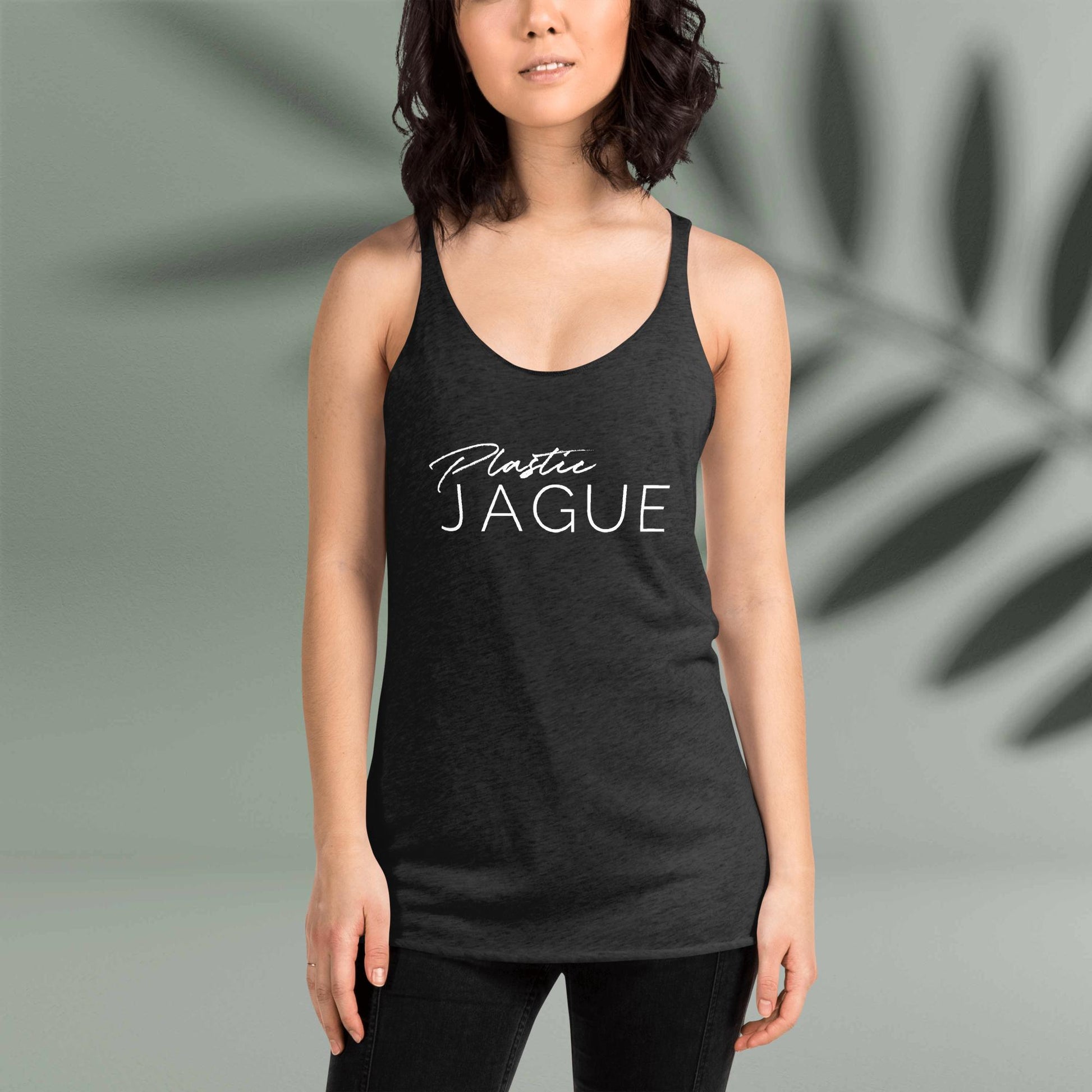 Casual Plastic Jague tank-top f=for women, with a racerback that is soft, lightweight, and form-fitting with a flattering cut and raw edge seams for an edgy touch.